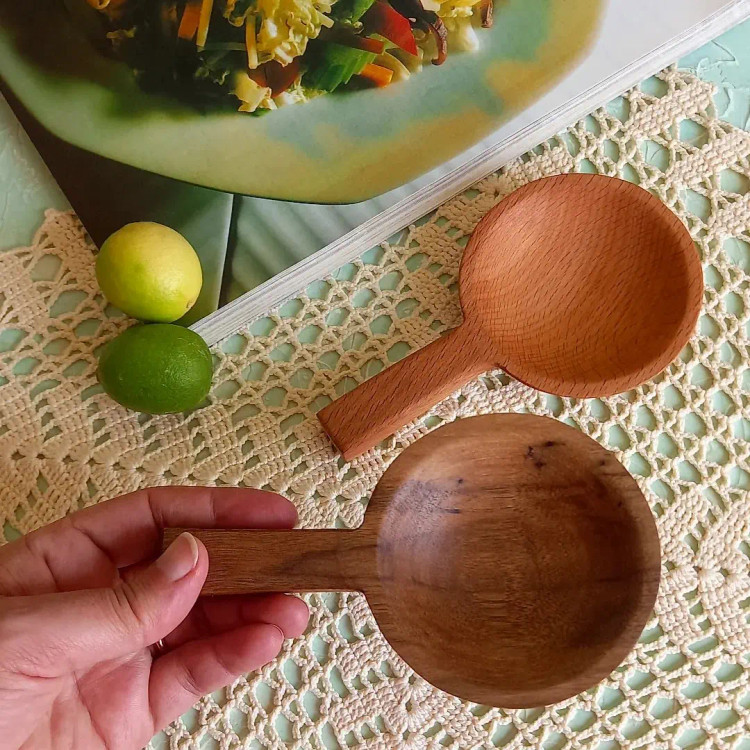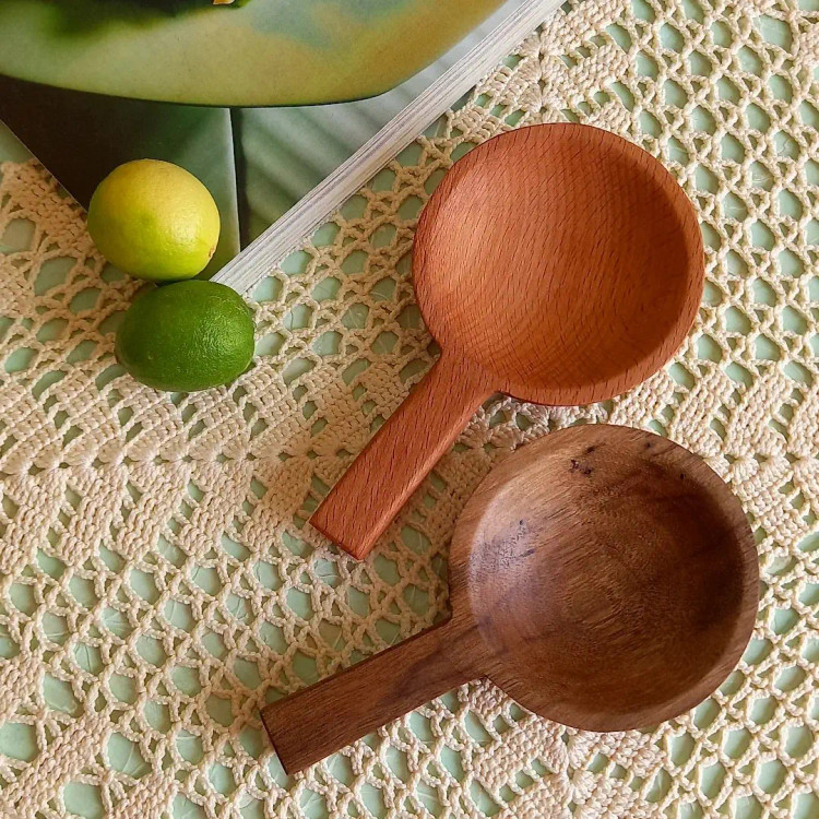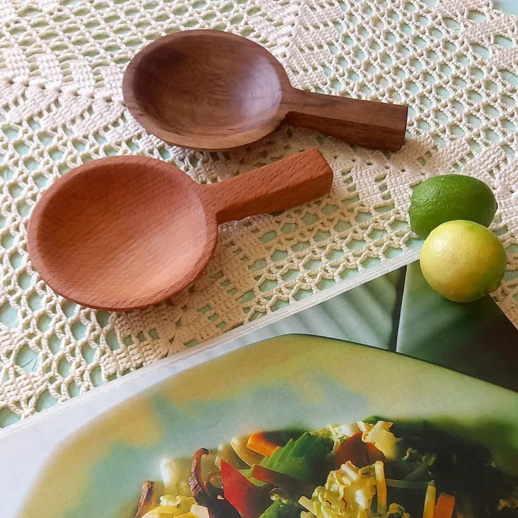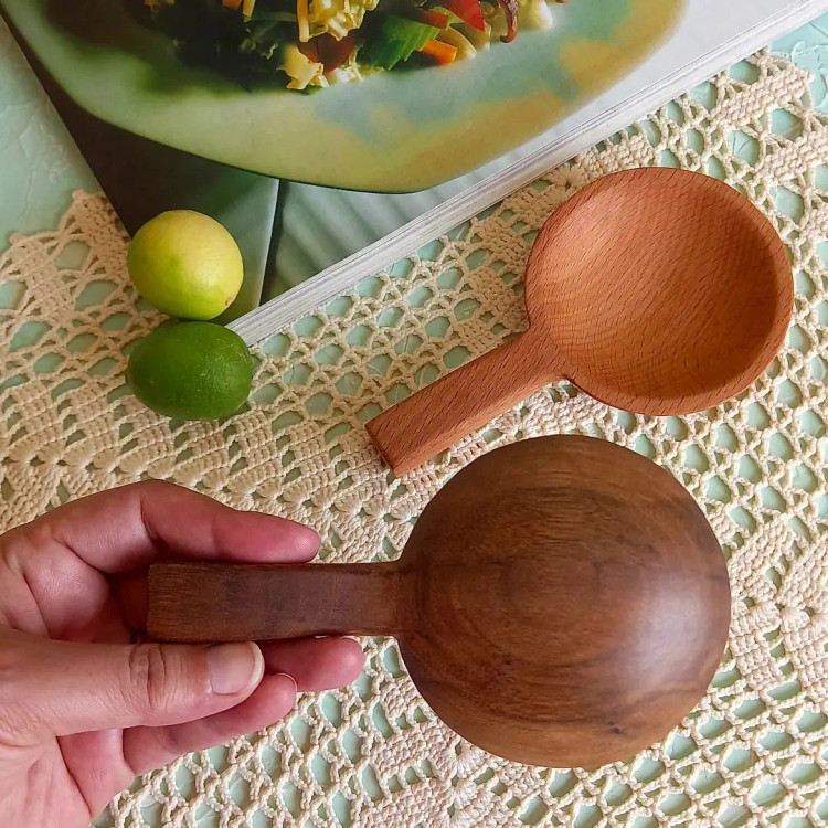 قاشق سالادخوری چوبی دست ساز برند بارلی چوب ست 2تایی 14 سانتی جنس چوب گردو و راش کد bar0049