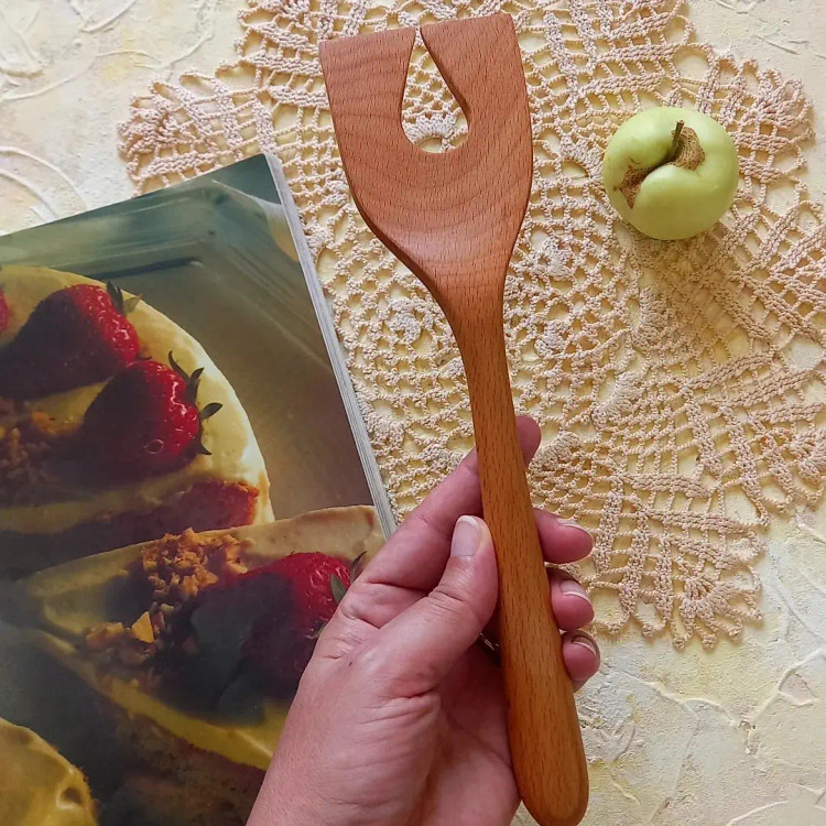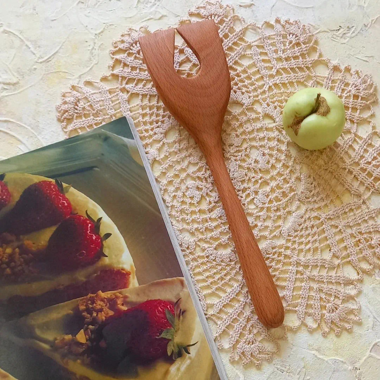کفگیر چوبی دست ساز برند بارلی چوب 25 سانتی جنس چوب راش کد bar0068