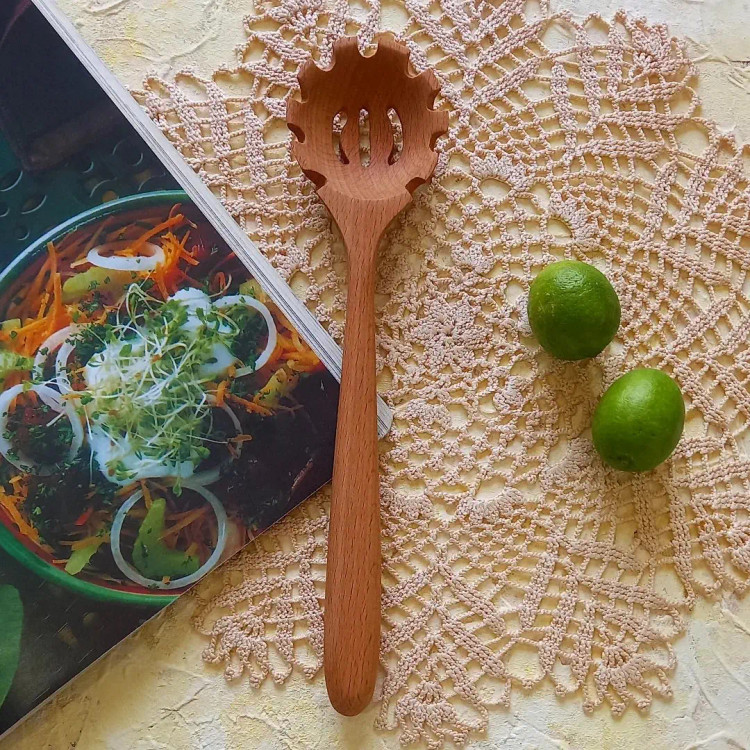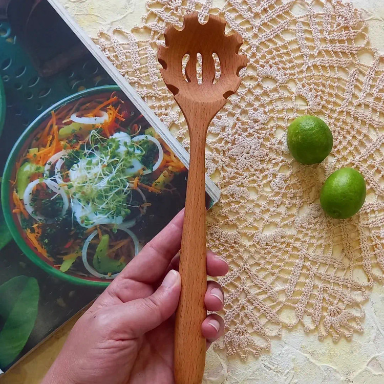 قاشق ماکارونی چوبی دست ساز برند بارلی چوب 25 سانتی جنس چوب راش کد bar0088