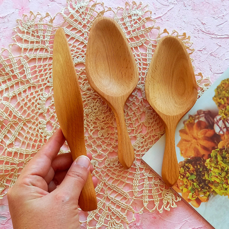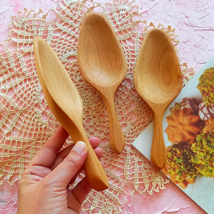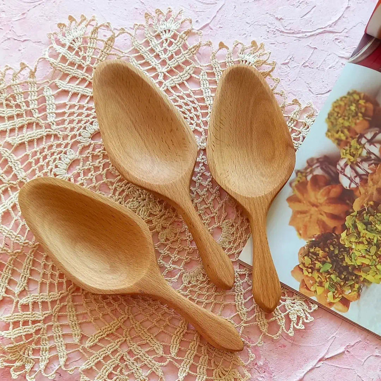 قاشق آجیل خوری چوبی دست ساز برند بارلی چوب 19 سانتی جنس چوب راش کد bar0007