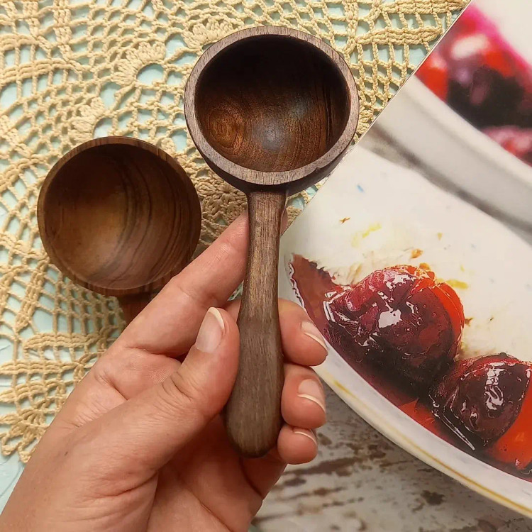 قاشق آجیل خوری دست ساز برند بارلی چوب مدل رزا 15 سانتی جنس چوب گردو کد bar0272