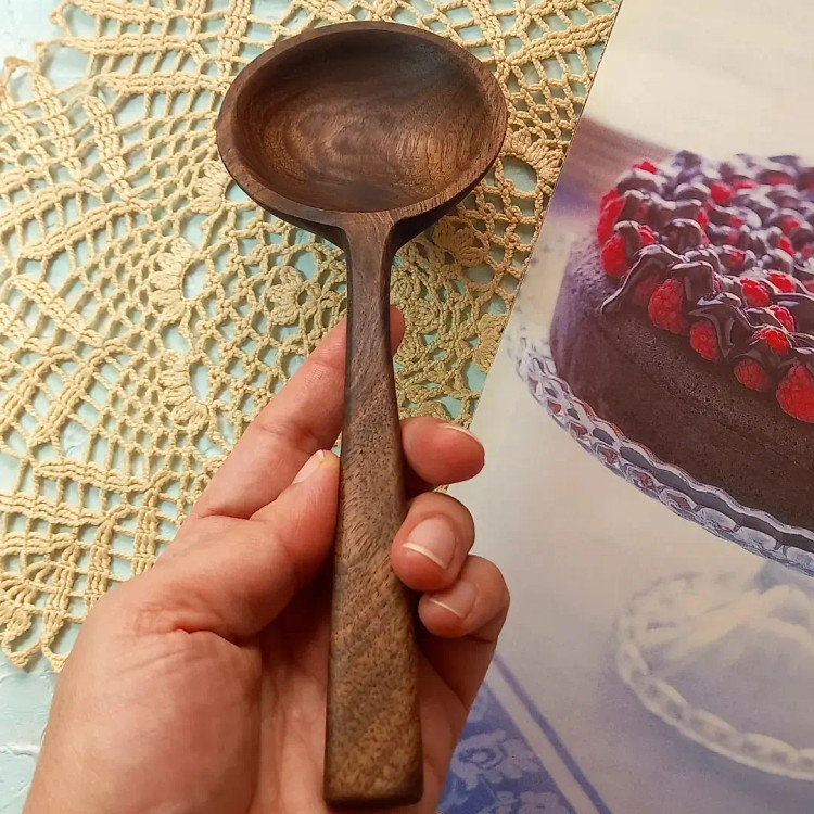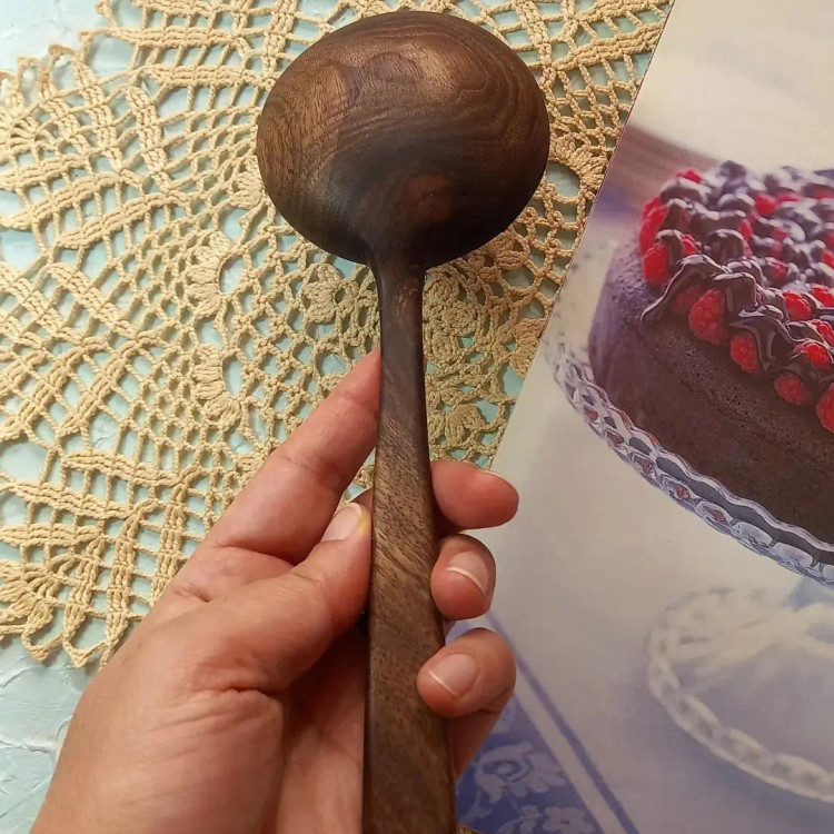 قاشق آجیل خوری چوبی دست ساز برند بارلی چوب مدل آسنا 22 سانتی جنس چوب گردو کد bar0253