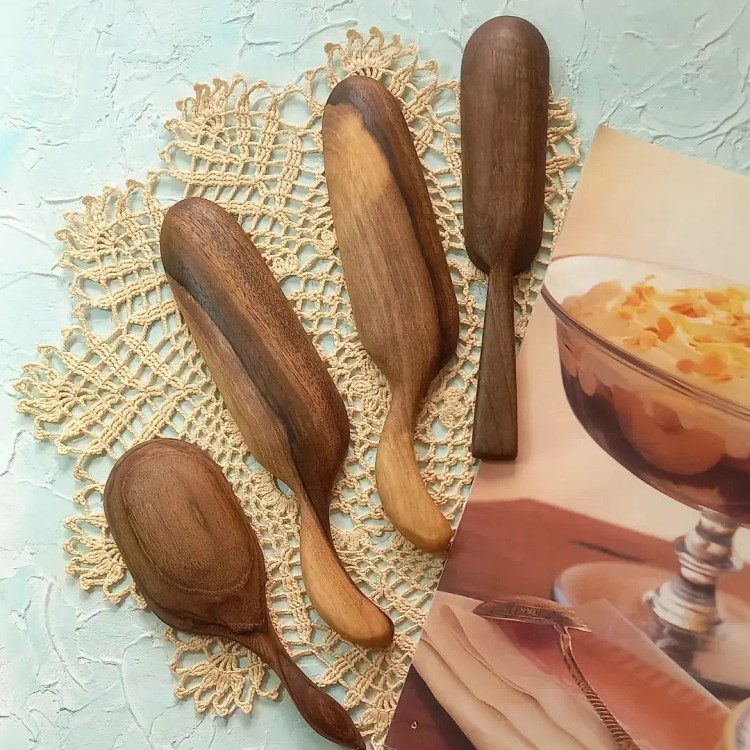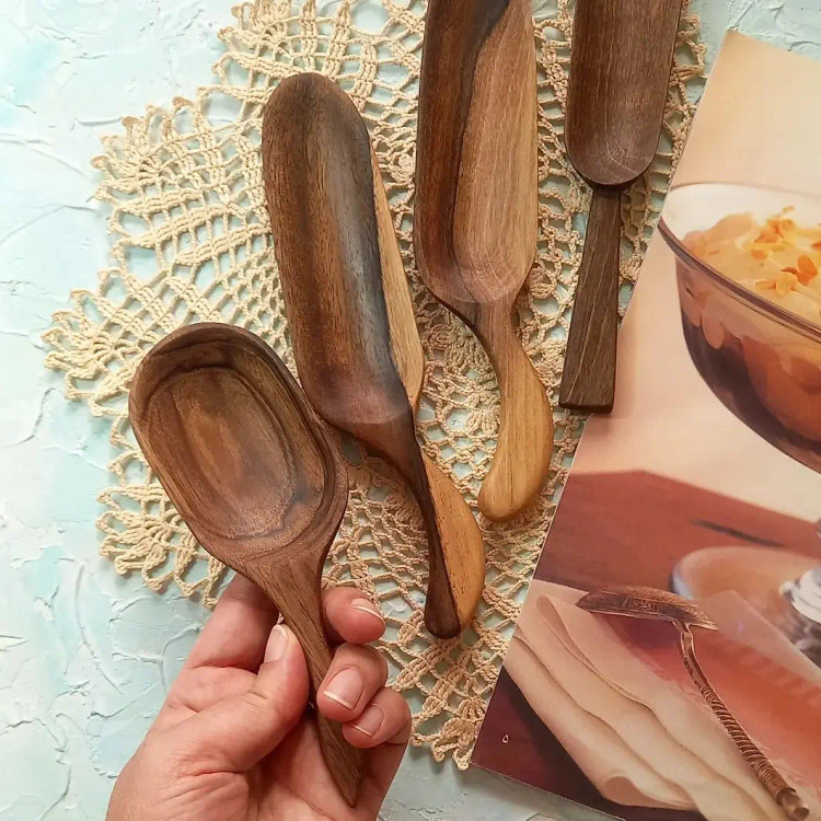 قاشق آجیل خوری چوبی دست ساز برند بارلی چوب (1عددی) مدل ماهلین 20 سانتی جنس چوب گردو کد bar0256