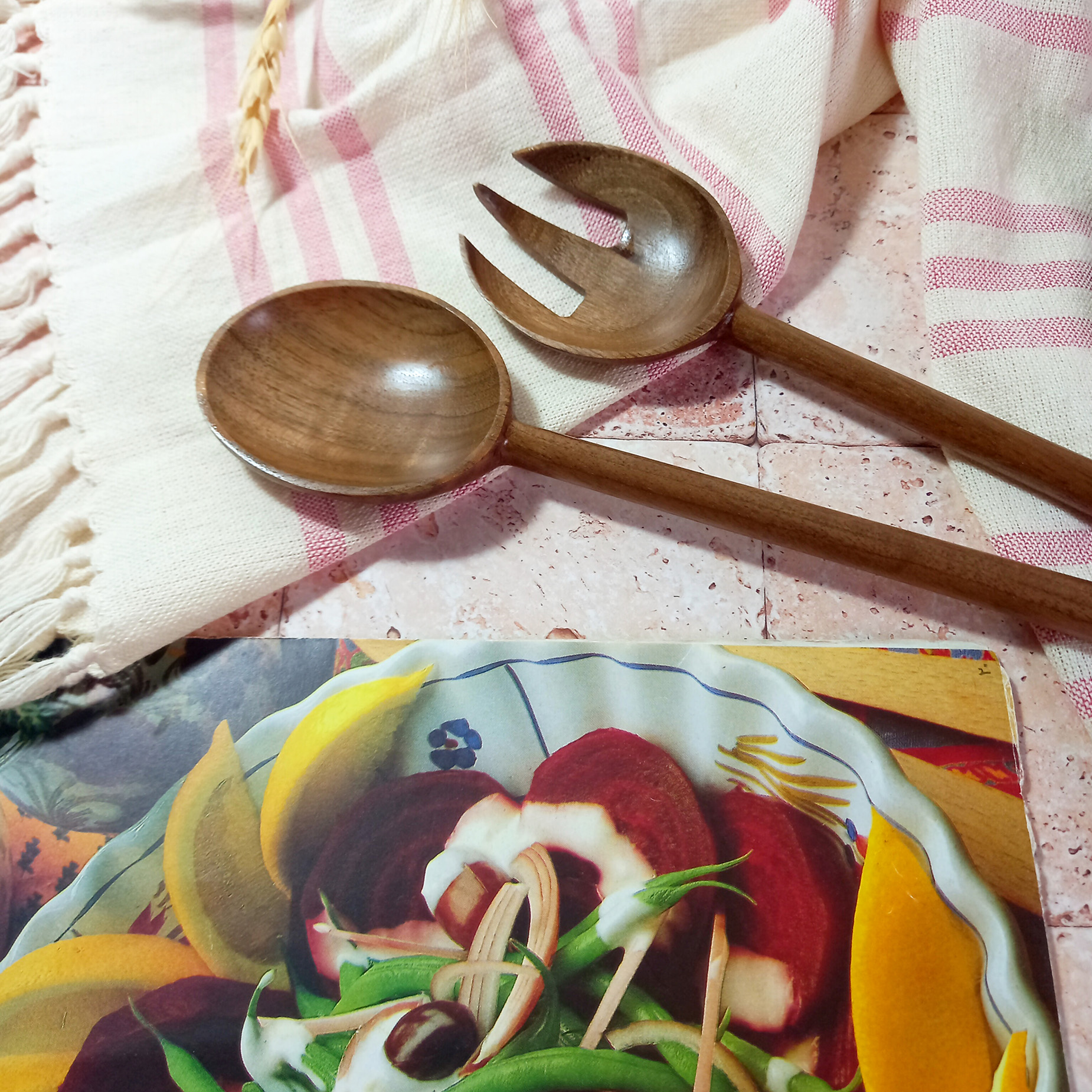 ست قاشق و چنگال سالادخوری چوبی دستساز ویژه جهیزیه عروس