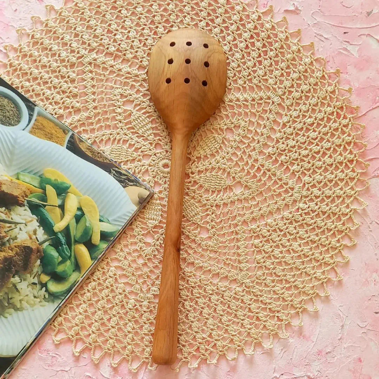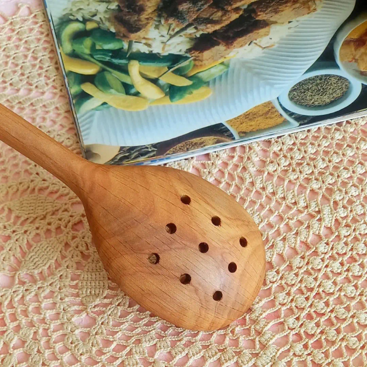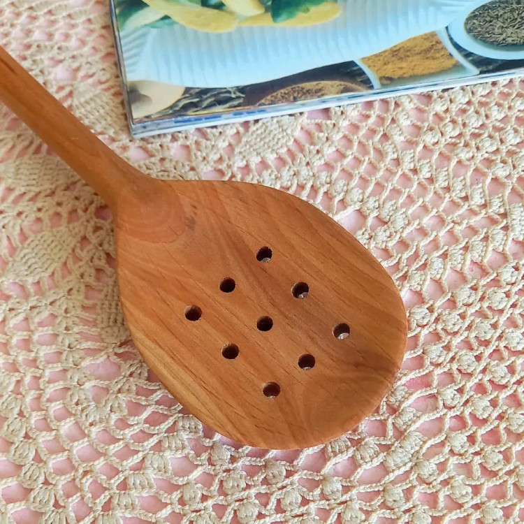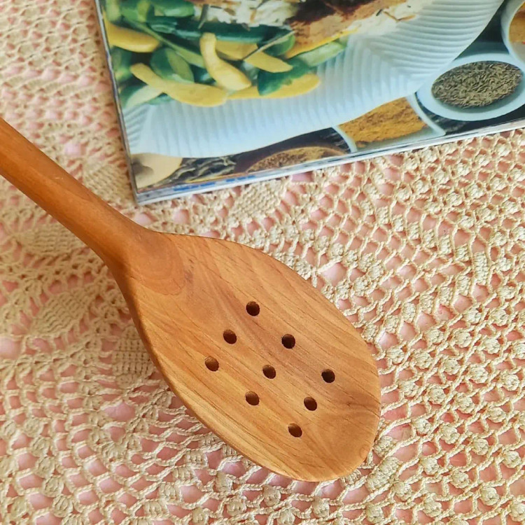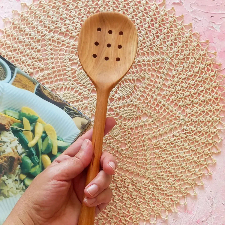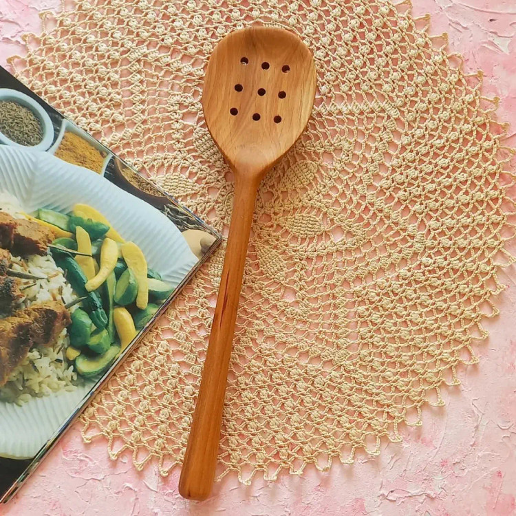 کفگیر چوبی دست ساز برند بارلی چوب دسته بلند 30 سانتی جنس چوب راش کد bar0163