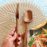 متاسفانه این کالا در حال حاضر موجود نیست. میتوانید از طریق لیست بالای صفحه، از محصولات مشابه این کالا دیدن نمایید.این محصول تماما دستساز بوده و کاملا استاندارد طراحی شده است. همچنین در طی فرایند ساخت بارها سمباده خورده تا سطحی کاملا نرم و صیقلی بدون هیچ گونه زائده تیز داشته باشد. سپس با روغن گیاهی مَمرِز ( مخصوص چوب ) پوشش دهی شده که مجوز مصارف خوراکی دارد و محصول را آبگریز کرده و تا ۷۰ درجه در برابر حرارت ایمن میکند.