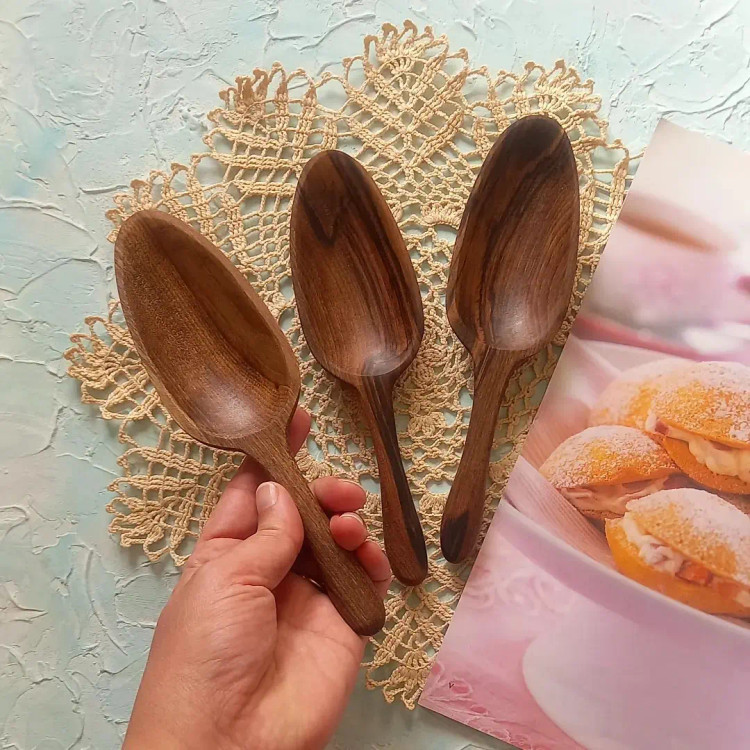 قاشق آجیل خوری چوبی دست ساز برند بارلی چوب مدل آینا (1عدد) 20 سانتی جنس چوب گردو کد bar0269