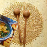متاسفانه این کالا در حال حاضر موجود نیست. میتوانید از طریق لیست بالای صفحه، از محصولات مشابه این کالا دیدن نمایید.این محصول تماما دستساز بوده و کاملا استاندارد طراحی شده است. همچنین در طی فرایند ساخت بارها سمباده خورده تا سطحی کاملا نرم و صیقلی بدون هیچ گونه زائده تیز داشته باشد. سپس با روغن گیاهی مَمرِز ( مخصوص چوب ) پوشش دهی شده که مجوز مصارف خوراکی دارد و محصول را آبگریز کرده و تا ۷۰ درجه در برابر حرارت ایمن میکند.